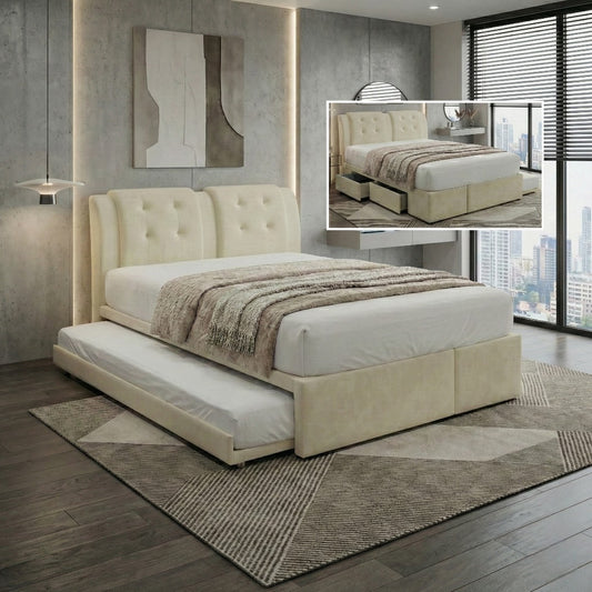 Aveline 2-in-1 Bed Frame (Queen/King) with Pull Out Trundle + 2 Drawers