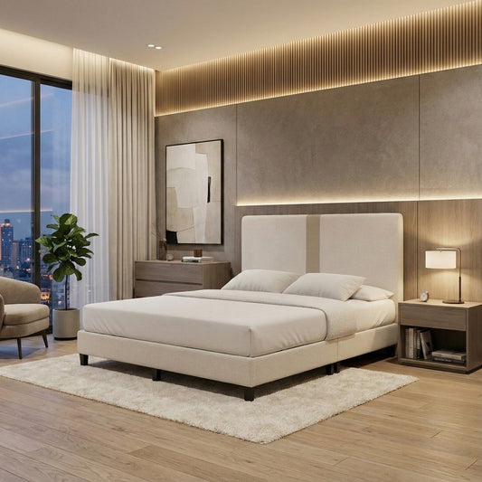 Merado Fabric Divan Bed - 8 Inch Base with Modern Minimalist Headboard