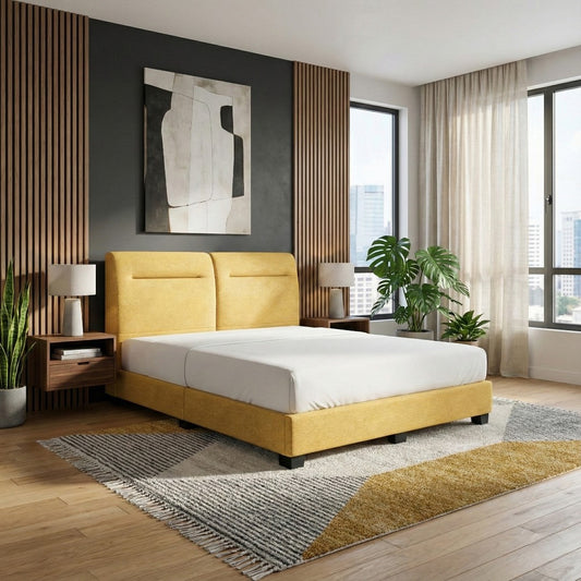 Calden Divan Bed Frame - Modern Fabric Upholstery with Two-Tone Headboard Design