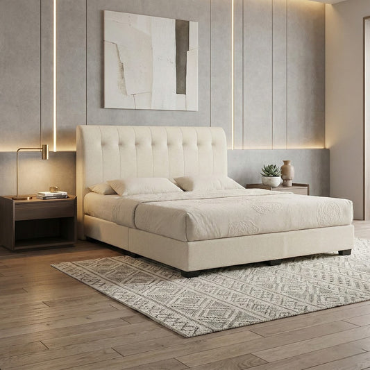 Auralis Modern Upholstered Bed Frame with Tufted Headboard | 8-Inch Divan Base