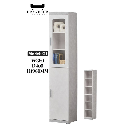 Elegant Light Grey Bookcase Display Cabinet with Glass Doors, Drawers & Shelves