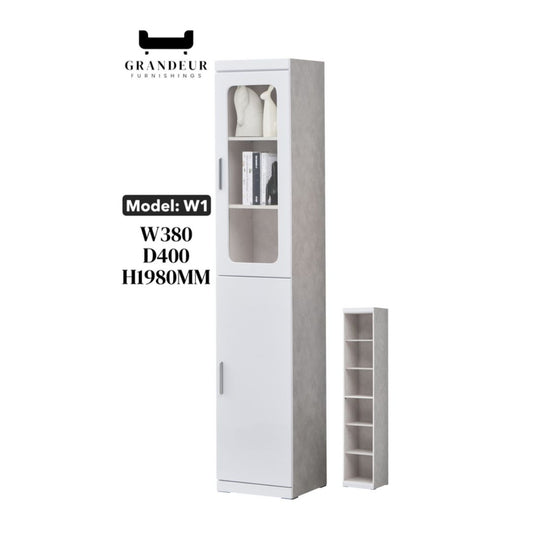 Multi-Storage Book Cabinet with Glass Doors & Drawers – White Finish