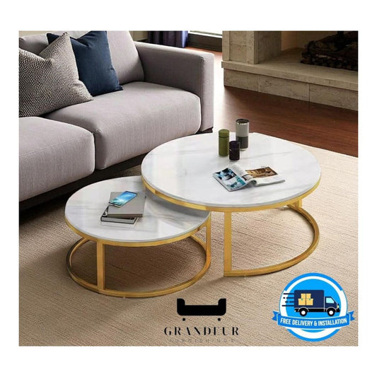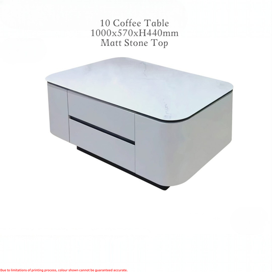 Gloss White Granite Stone Coffee Table with 2 Soft-Closing Drawers