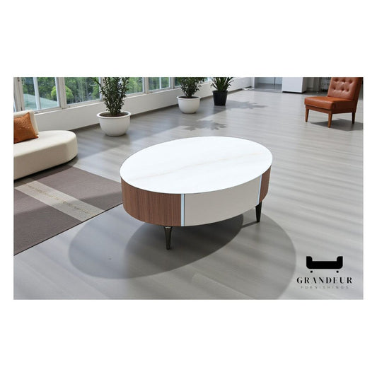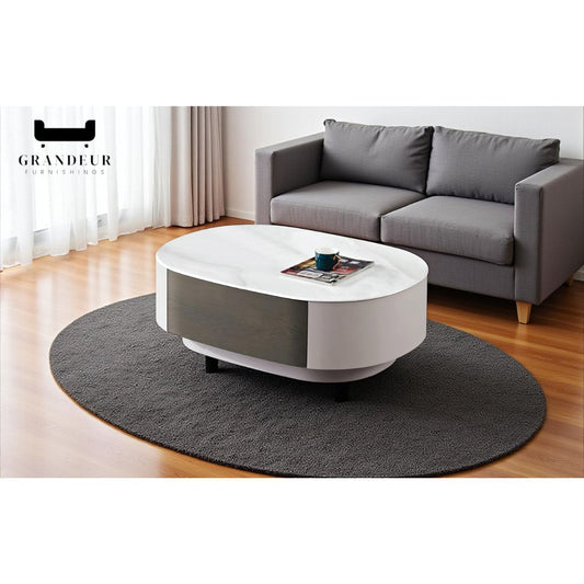 Elegant Oval Coffee Table with Soft-Closing Drawer