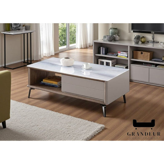 Lucent Stone Top Coffee Table - Modern Luxury Center Table with Storage Drawers | Scratch-Resistant Sintered Stone & High Legs