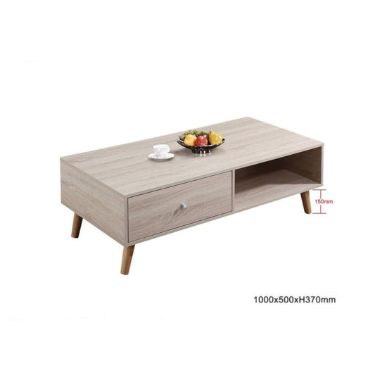 Modern Wooden Coffee Table with Storage Drawer and Open Shelf