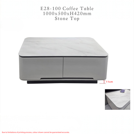 Vallin Stone Top Coffee Table - Minimalist Center Table with 2 Drawers | Rounded Safety Edges & Elevated Plinth Base