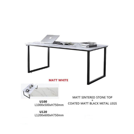 Matt Sintered Stone Top Study Table with Matt Black Metal Legs – Available in White & Grey