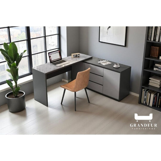 Modern L-Shaped Study Office Desk Table with Storage