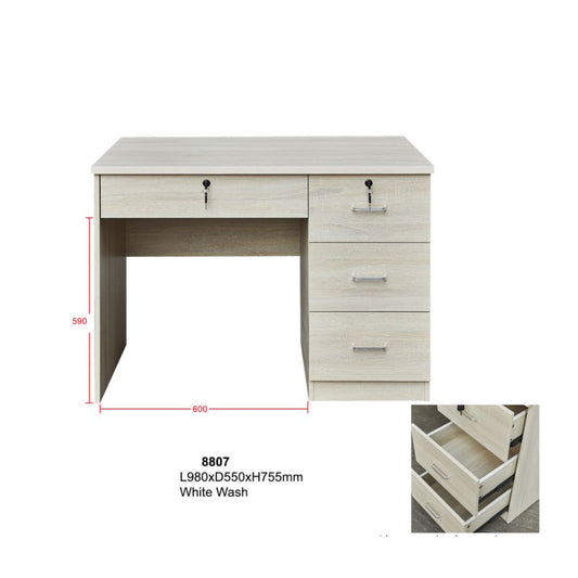 White Wash Study Table with Spacious Drawers - Two Sizes Available