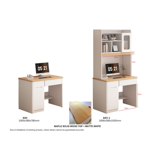 Study Table with Maple Wood Top & Matte White Base - Multiple Sizes Available