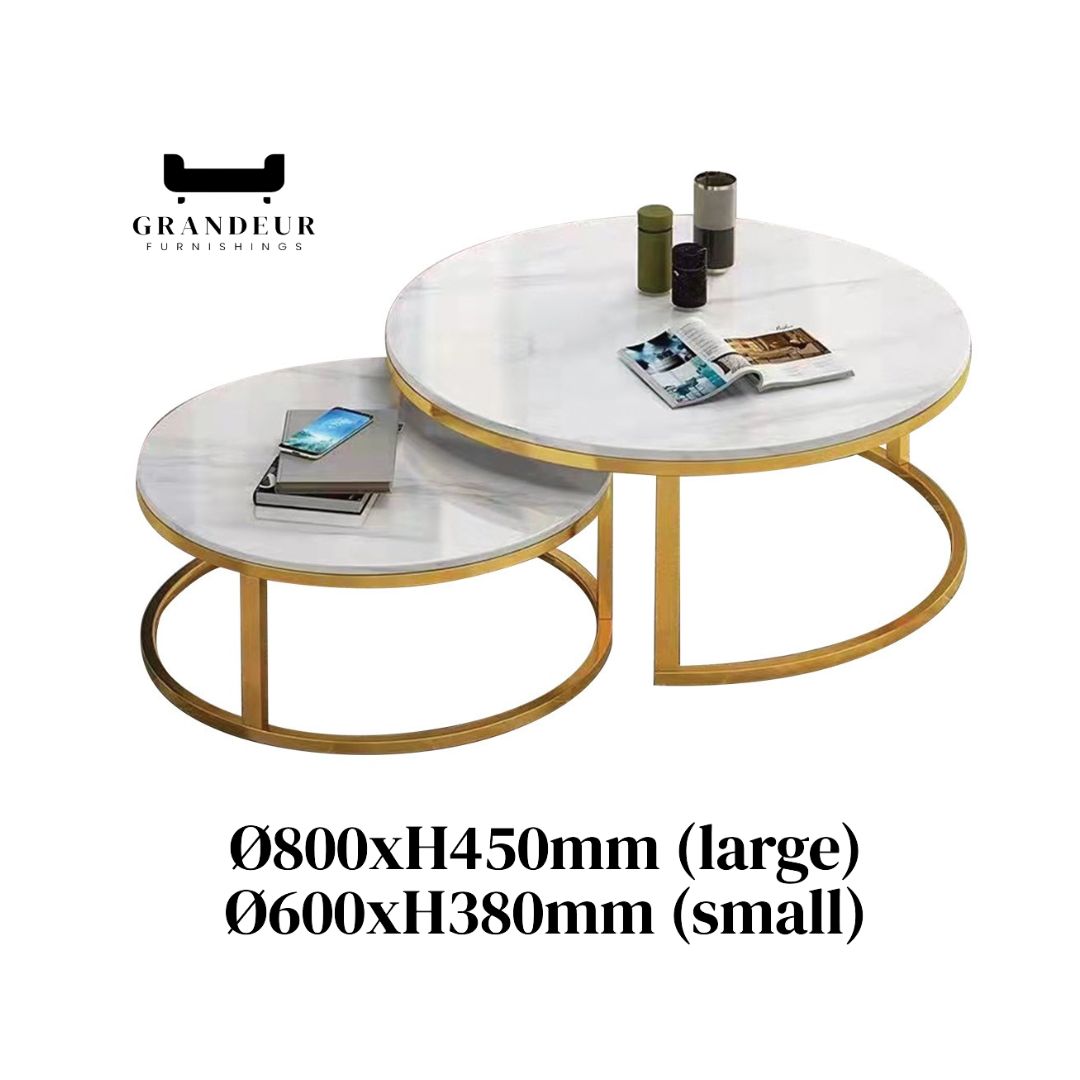 Elevate your living space with this stunning, contemporary coffee table set. Available in two elegant finishes—White Gloss and Black Gloss—these tables feature a sleek sintered stone top for a polished, high-end look. The round tables are designed with a dual-layered structure, offering both style and practicality. The larger table measures Ø800xH450mm, and the smaller one Ø600xH380mm, making them perfect for any living room or lounge area.