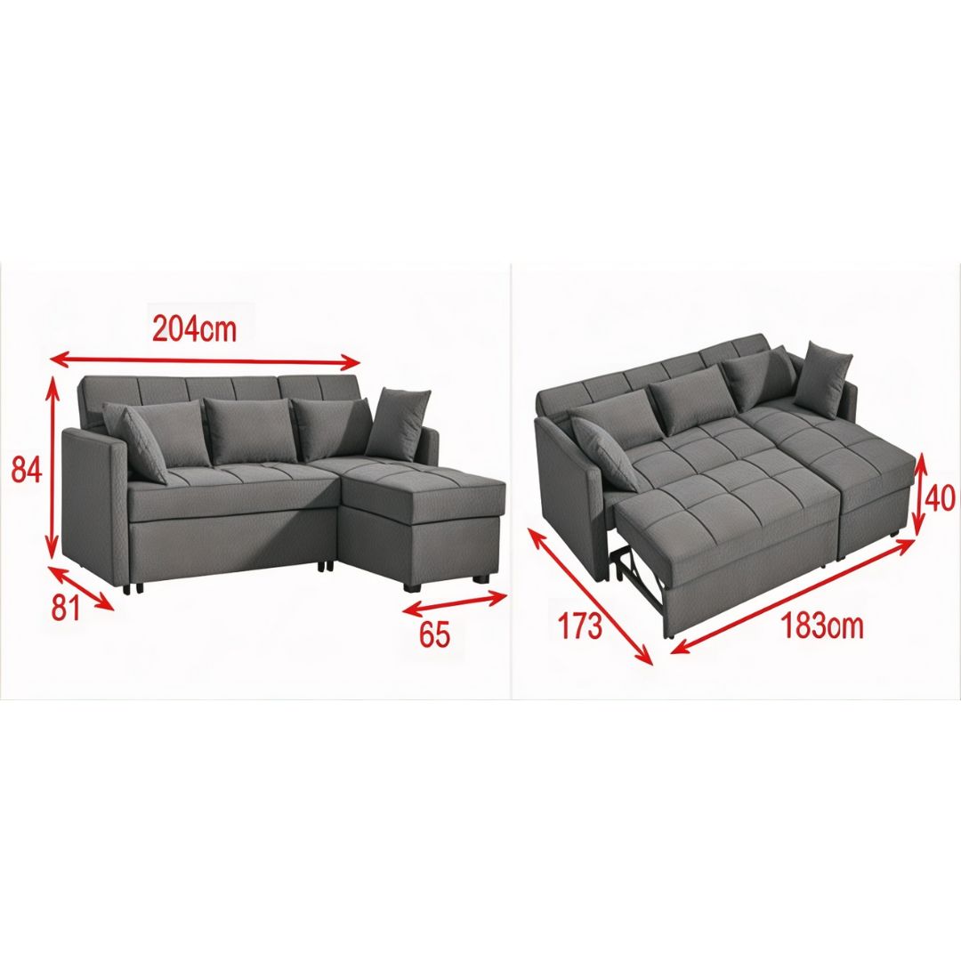 Perfect for adding both style and practicality to your living room, this L-shaped fabric sofa bed is the ideal solution for compact spaces and overnight guests!