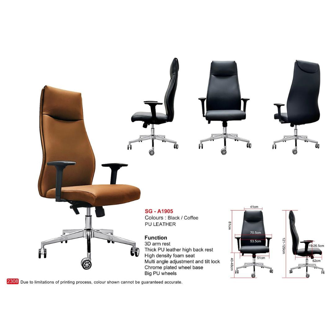 Elevate your professional environment and experience unparalleled comfort with the SG-A1905. This premium executive chair is meticulously designed for discerning individuals who demand both sophisticated style and superior ergonomic support. Whether for your corporate office or a high-end home setup, the SG-A1905 is a statement of comfort and class.