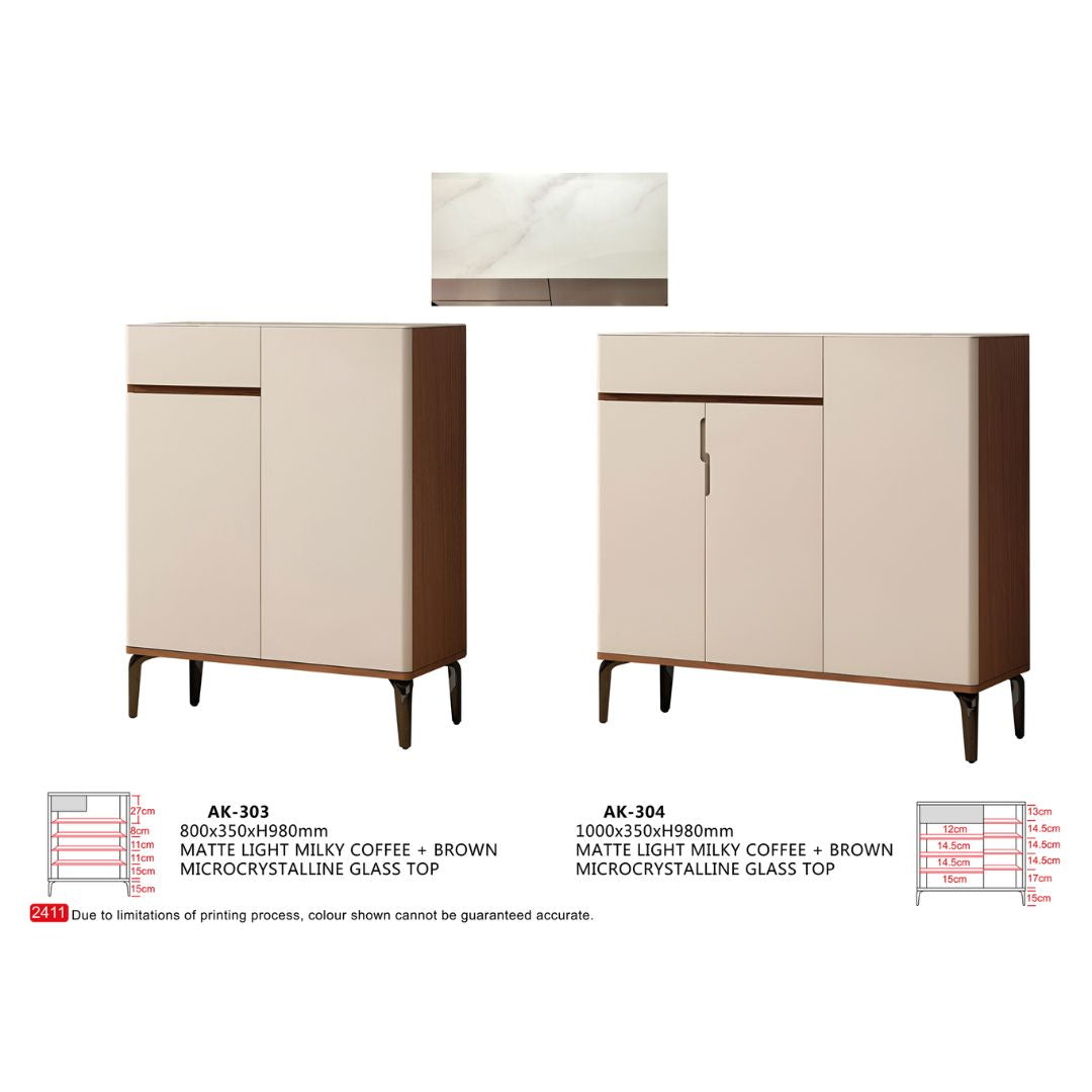 ✅ Sleek Design: Features a matte light milky coffee finish paired with a rich brown wood base and microcrystalline glass top, offering a sophisticated and modern look.